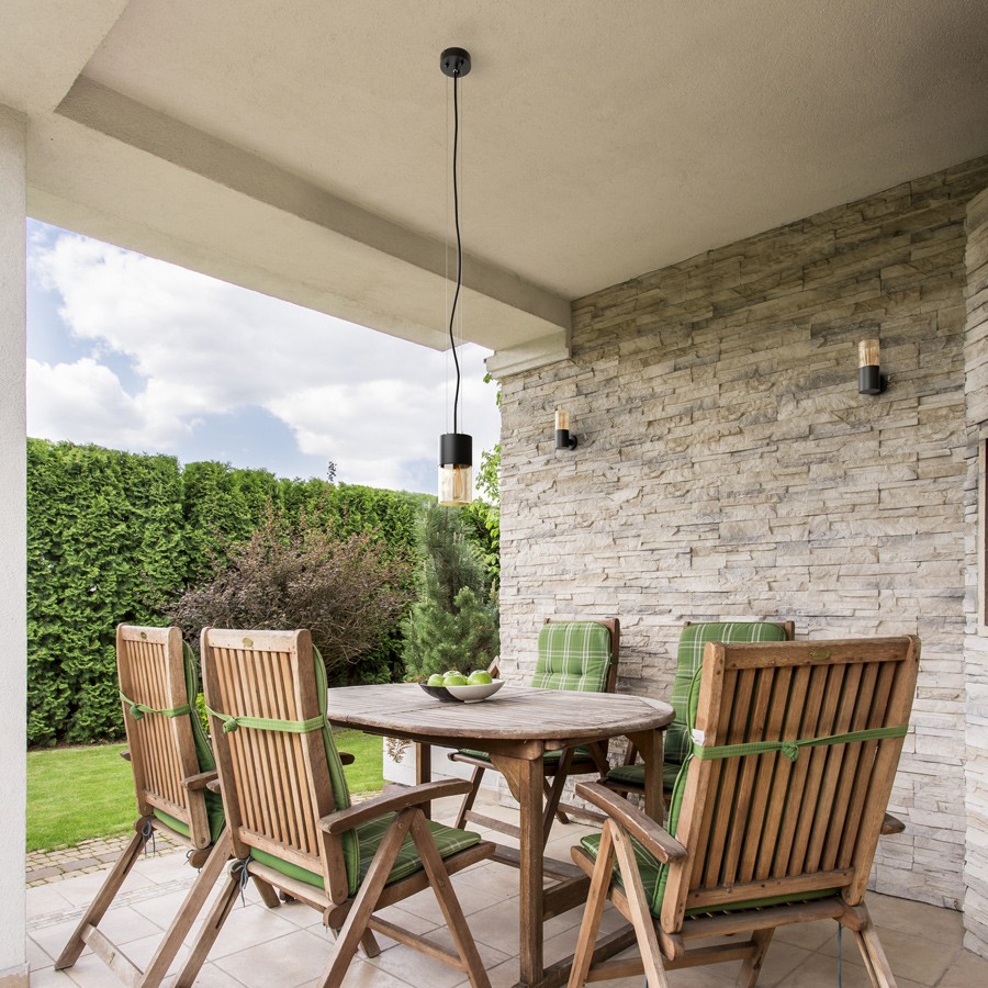 Outdoor wall light with amber glass for ambient lighting using LED light sources with an E27 socket.