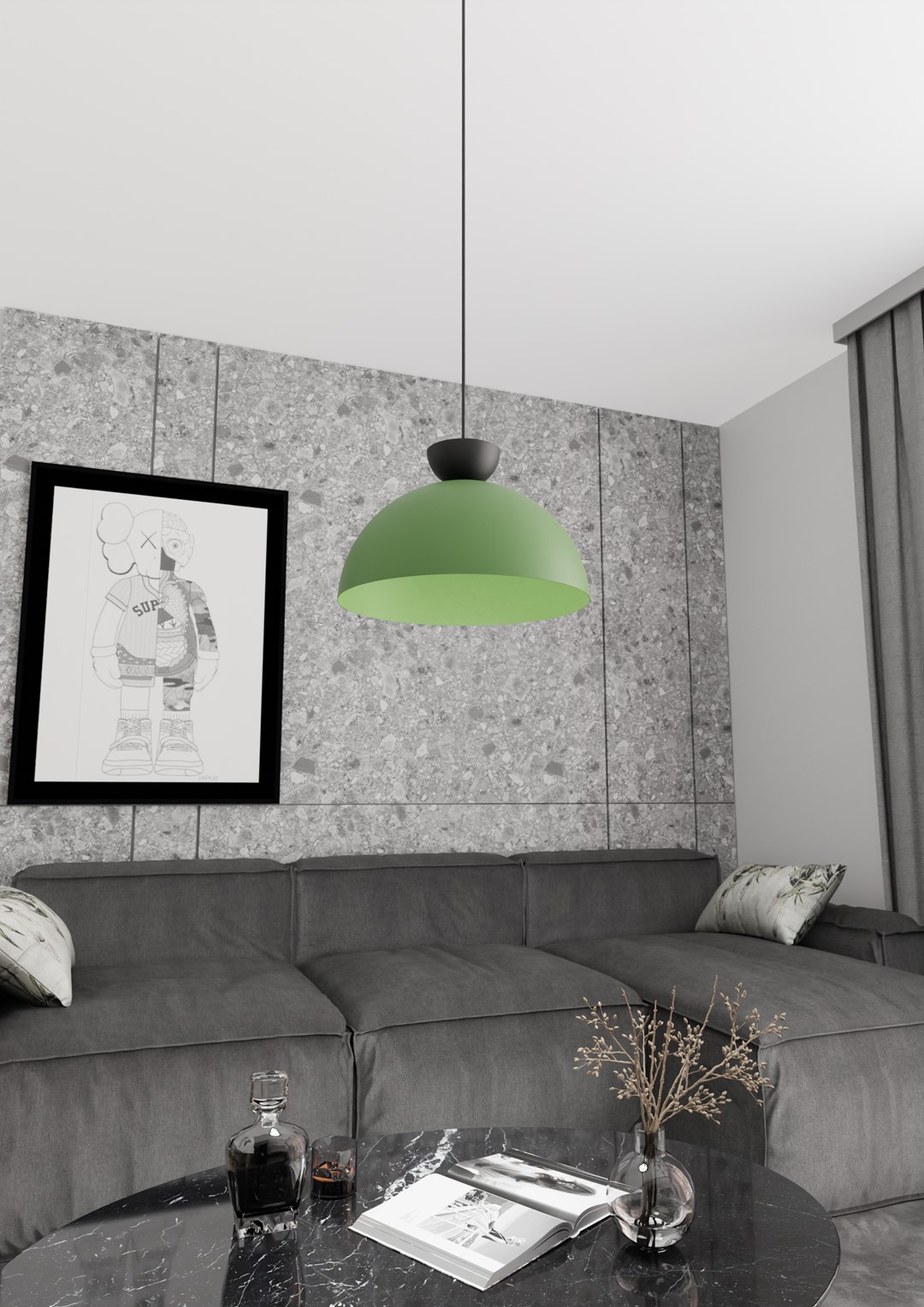 LUNARO pendant lamp is an elegant blend of modern minimalism and timeless style. Its harmonious, hemispherical shade—reminiscent of the moon’s shape—creates a cozy and atmospheric glow that fits beautifully into any interior, from modern lofts to classic arrangements. The matte finish adds a refined touch, while the simple yet sophisticated design makes it a standout feature in any space. With adjustable suspension length, the LUNARO lamp is perfect above a dining table, as well as in the living room or bedroom.